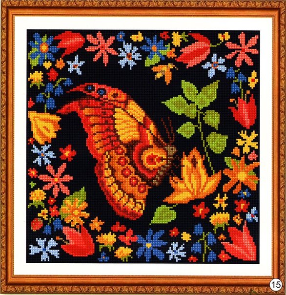 схема вышивки крестом подушки Бабочка 2 часть 1