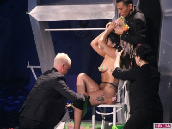 Популярная американская певица Lady GaGa на данный момент находится в турне ARTPOP Ball, в котором как всегда нашла чем удивить своих поклонников. На концерте во Флориде (США) 28-летняя певица устроила стриптиз. Такого действия скорей всего не ожидал никто. Раздевалась исполнительница не самостоятельно, помогали ей члены ее команды. В результате, она осталась на сцене в порванных прозрачных колготах. Хотя, может как раз поклонников этой певицы, подобным и не удивишь. Lady GaGa давним давно славится своим эпатажным и скандальным характером. Еще напомню, что 13 марта Lady GaGa дала очередное экстраординарное выступление, она спела на праздновании Born This Way Foundation. Во время исполнения песни Swine к певице подошла девушка из подтанцовки и, вставив два пальца в рот, начала отрыгивать на Lady GaGa зеленую жидкость. Самым шокирующим было то, что все это происходило по сценарию.