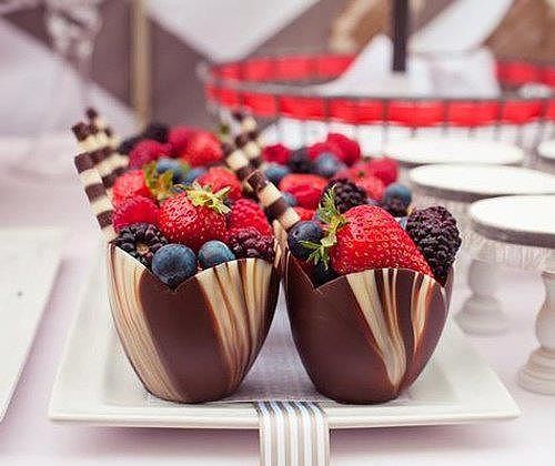 Очень апетитный десерт! Выглядит обалденно! А как сделать такие шоколадные корзиночки для фруктов? Или их можно купить уже готовые?