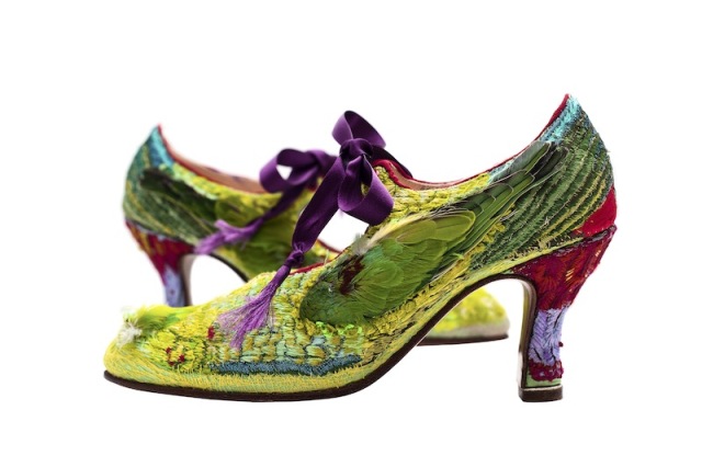 Смотрите какие красивые яркие туфли интересного фасона украшенные перьями экзотических птиц! Это для какого-то райского или тропического образа, очень красивы сами по себе. Не знаю, как они в носке и что под них одеть, но сами по себе они настоеще произведение искусства!