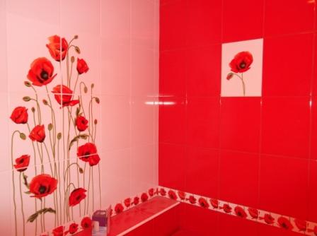 Аврора писал(а): Вот эта ванная комната мне очень понравилась Видела ванную комнату в красных тонах воочию. Практически вся плитка красная на стенах и полу, но одна стенка оформлена плиткой-панном или как-то так называется. Вообщем, одна стенка выложена белой плиткой с нарисоваными красными маками, которые в целостности создают один рисунок. Смотрится красиво. Раковина, унитаз, стиралка белые, а вот внутрення поверхность ванны красная. Это единственное что мне не понравилось.