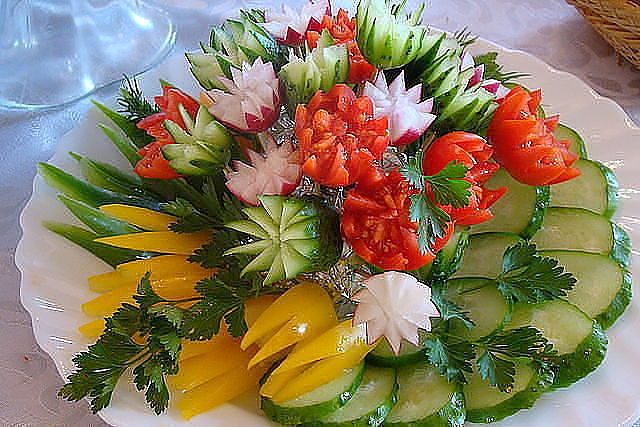 Nastasya писал(а): ПНВ писал(а): Я вот нашла фото блюда, где для карвинга не надано никаких спецыальных инструментов, просто нож и фантазия: а мне, честно, не очень понравилось, как-то безвкусно... Мне тоже оно не очень, но просто хотелось показать, что можно украшать блюда и без спец. приборов