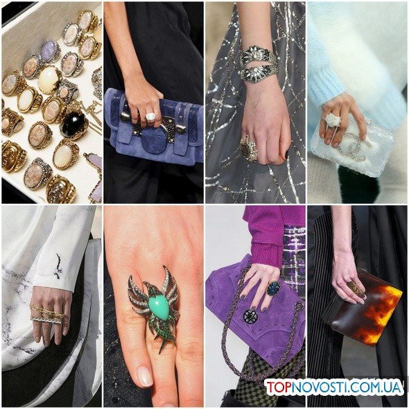 И еще: Модная тенденция-2012 соответствует правилу: «все новое – хорошо забытое старое». К нам вернутся стильные детали из прошлого столетия – внушительные украшения, женственные широкополые шляпы, соблазнительные вуали, меховые наушники, вместительные сумки и иные аксессуары в стиле ретро-шик, которые сделают таинственно-неотразимой свою модную обладательницу. Также актуальными будут поделки из перьев, крупного бисера, жемчуга и меха. В 2012 году снова войдет в моду крупная пластмассовая бижутерия – массивные браслеты, объемные серьги и кулоны. При этом украшения из золота, серебра и драгоценных камней никто не отменял. Впрочем, как и табу на смешивание бижутерии с золотыми и серебряными украшениями. Ещё одной достаточно популярной тенденцией обещают стать браслеты с мелкими и крупными камнями прозрачной текстуры. Кольца и перстни не удивят своим изяществом. Дизайнеры видят их в привычной закругленной форме и довольно внушительных размеров. Некоторые предлагают надевать их прямо на перчатки.