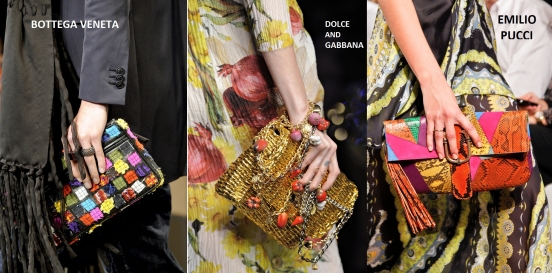 Похоже,что главное правило сезона сумок весна 2012-это цвет И чем ярче аксессуар,тем лучше.Актуальными также будут сумки с экзотическим принтом,украшенные заклепками и вышивкой.