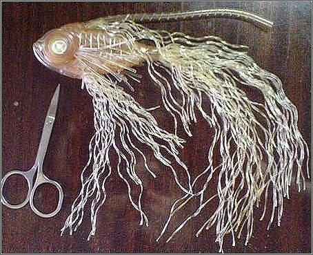 Рыбок таких из капельниц и я когда-то плела. И не только рыбок, но и ручки оплетала и спицы  сипеда. Так что и не избежала такого всеобщего поветрия. Но как это делалось я теперь однозначно и не вспомню. Но вообще прикольно было.