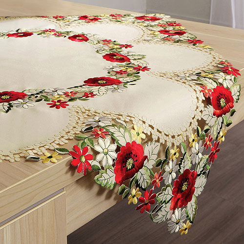 Очень красивая вышивка гладью встречается на скатертях и на салфетках. Правда она, наверное, машинная, а не ручная: