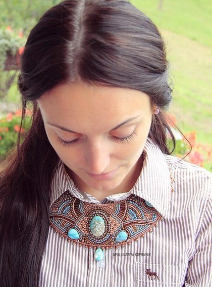 Мне безумно понравился такой воротник-украшение из бисера, сколько же там труда и времени положено, невероятная красота
