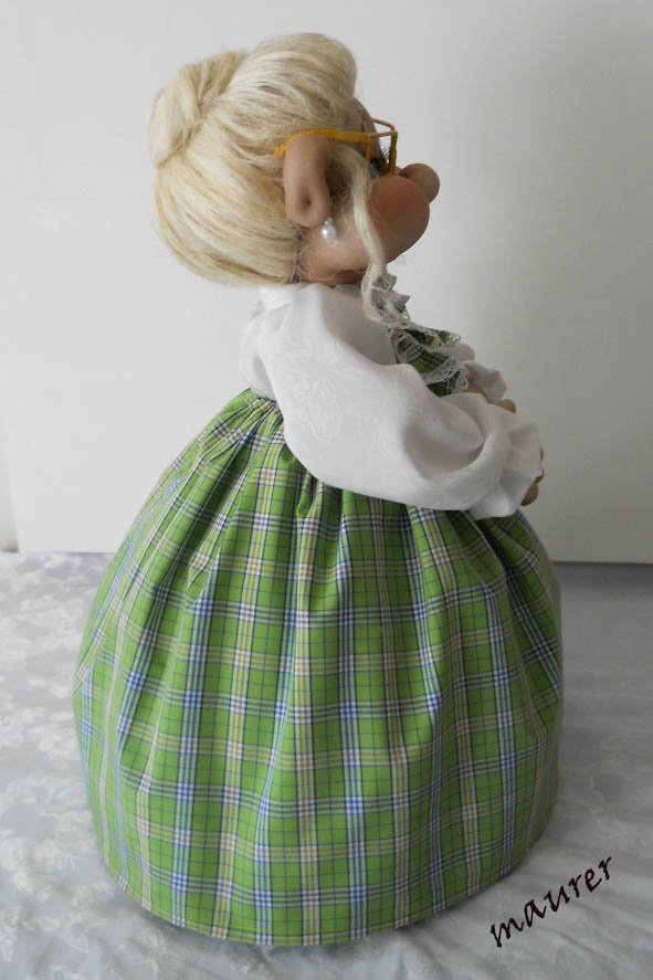 Миссис Хадсон.Кукла-грелка на чайник. Высота около 50см. Материалы:поплин, шелк,ватин, синтепон, капрон. Волосы - натуральный лен. Кукла с пакетницей поедут в столицу солнечного Азербайджана город Баку к хорошему человеку - Наталье. Спасибо ей большое за этот заказ. Вложение: