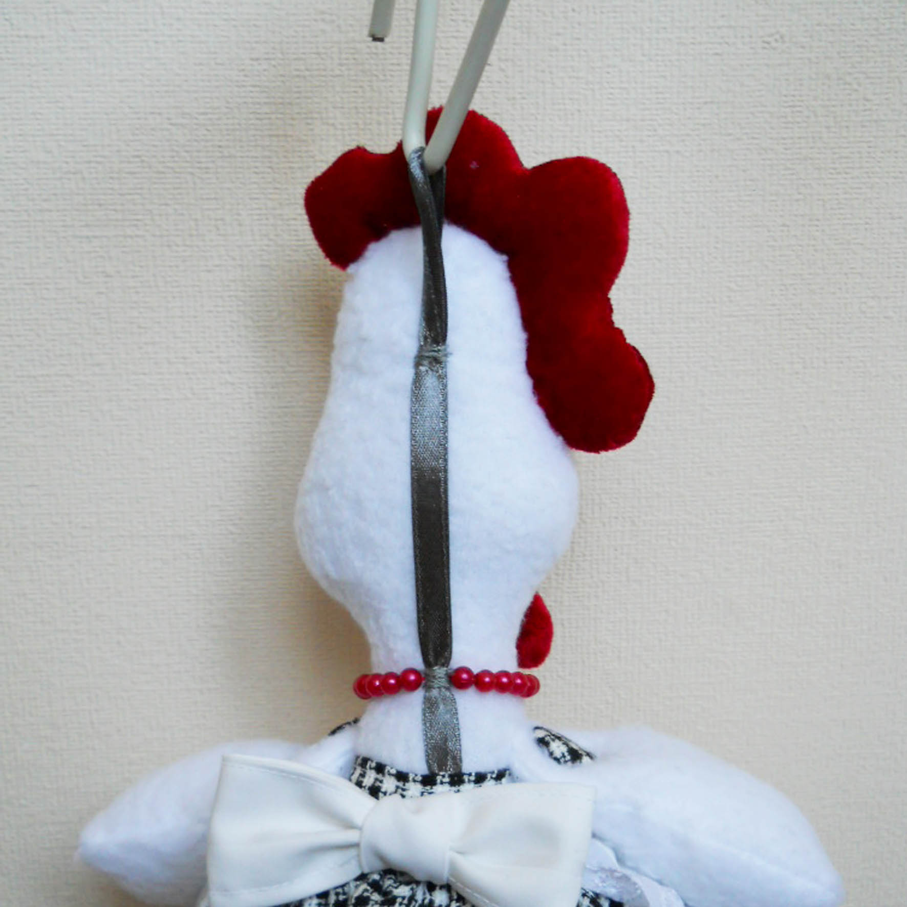 Вся эта конструкция длиной 40-50см вешается на крючок на кухне в удобном месте на надежно закрепленную к шее и голове петельку. Вложение: