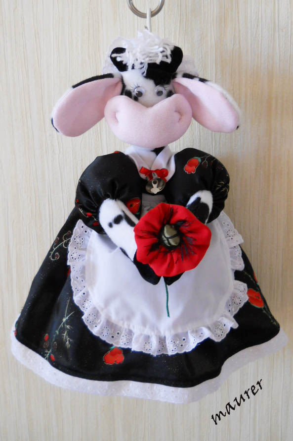 Все своими руками. Пакетницы это ткань. Вороны,например, бархат черный, кошки мех мутон (еще покажу), коровки коротковорсовый мех , а у кукол-грелок лицо и ручки сделаны из капроновых колгот. Когда комок синтепона с натянутыми сверху колготками в руках превращается в смешную мордашку - чувствуешь себя феей.  Столько удовольствия! Я в свои изделия вкладываю душу и положительные эмоции.