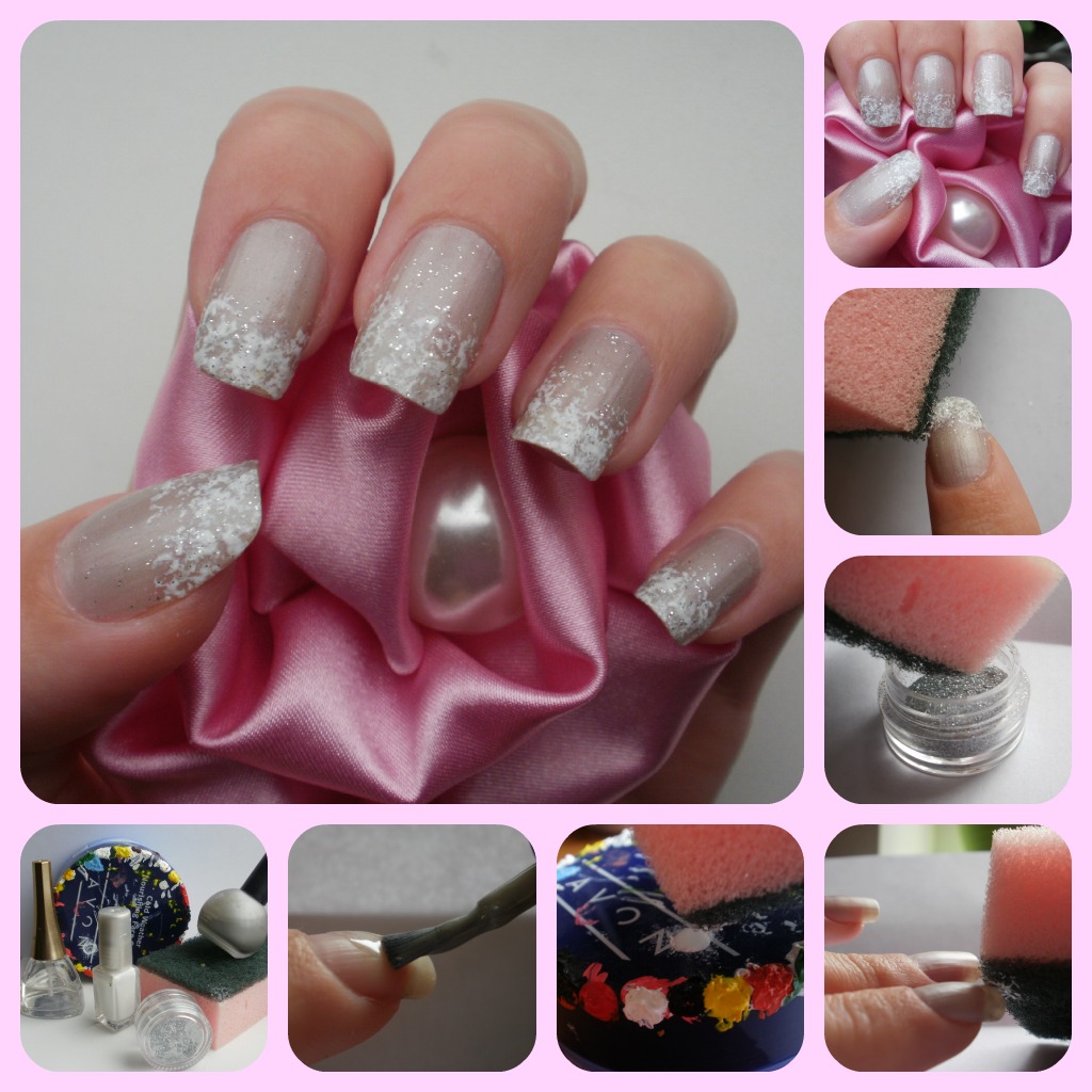 Где ее можно купить? Думаю, що можна користуватись звичайною, де посуд мити))) От блискітки я ще уявляю зробити, так як показано, от з двома звичайними лаками не дуже, як саме вони так рівномірно розгладяться після губки  Ну в том варианте что показывала я там не совсем идеальный переход, похоже больше на иней. Если цвета не контастные, то плавно перейти им вполне реально.