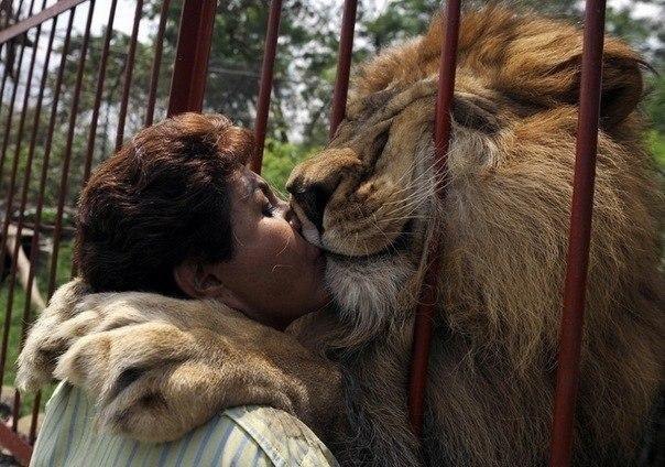 Когда-то эта женщина спасла маленького львенка и ухаживала за ним до тех пор, пока он не стал слишком большим. Как бы она не хотела, но ей пришлось отдать льва в заповедник. Подыскав наилучший, они расстались. Это фотография их встречи через год после разлуки.