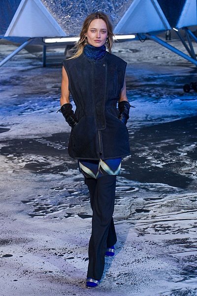 Вчера в Париже была представлена новая подиумная линия H&M Studio, наблюдая за ней вы можете легко, в своем воображение, перенестись в космическое виртуальное путешествие. В принципе уже ясно, что в основу линии одежды от шведского бренда сезона осень-зима 2015-16 легла космическая тематика. Дизайнер Анн-София Йохансон переплела тему космоса с темой ярких 70-х годов. В этой линейке присутствуют, как раз подходящие для осени спокойные тона такие, как синий, фисташковый, золотистый, коричневый, песочный, бордовый, терракотовый. Показ проходил на фоне лунного декора, открывала его модель Кэролайн Де Мерге одетая в серебряный комбинезон. После выхода, она села за диджейский пульт. Кроме комбинезонов, присутствующие в зале увидели, а мы на фото можем так же лицезреть, такие вещи, как брючные костюмы, шерстяные свитера, свободные брюки, жакеты, куртки, несколько платьев. В качестве обуви для показа были выбраны или дутые сапоги, или прямы сапоги на устойчивом каблуке. Я скажу, что как для этой марки коллекция немного странная, правда? Вот, я мало, что из этого одела бы. gallery/album.php?album_id=151
