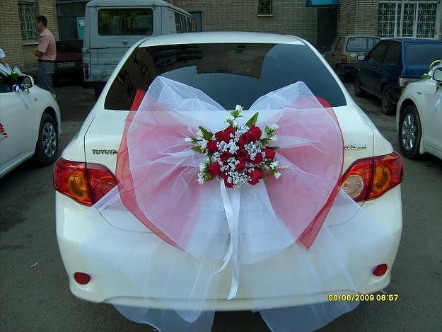 Видела свадьбу с двумя машинами жениха и невесты, украшены были вот так)