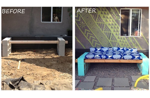 Да, у нас в городе, есть кафе, где на улице такие диванчики стоят, удобно и комфортно на них кофе пить, если бы не увидела и не знала бы из чего они сделаны) Экономия думаю колоссальная получилась)) Вот еще идея, но с кирпичиками