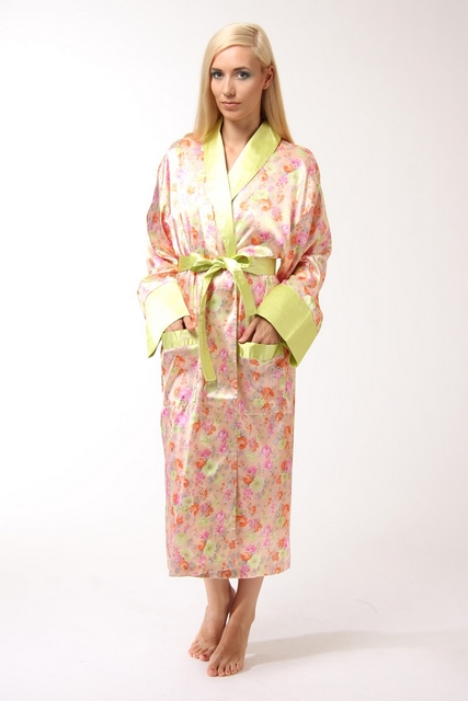 Мне нравятся халаты, нравится их носить, у меня их два - пушистый махровый для ванны и шикарный шелковый с запахом, бирюзовый, на спине на всю спину большой малиновый цветок, и впереди внизу цветок. классно смотрится. я вот в нете нашла такой нежный халатик, только он непривычно длинный для шелкового.