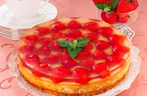 Этот торт по моему без желе, а просто украшен свежей клубникой. С желе это вот так Вложение: