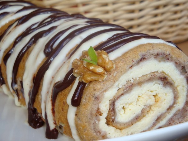 Леди-Ю писал(а): Вот так можно украсить такой тортик: У нас есть отдельная тема по украшению тортов topic184915.html!Я очень люблю творожный крем, в этот раз хочу поделится рецептом творожного торта - рулета. Нужно взбить 400 гр творога, 1 яйцо, 100 гр сахара, 3 ст.л молока, вылить массу в форму, застеленную бумагой. Дальше отделить белки от желтков (3 яйца), желтки взбить с 2 ст.л сахара, ванилином, отдельно взбить в блендере 1 банан и 50 гр орехов, смешать банан и желтки, туда же добавить пол ч.л разрыхлителя и 3 ст.л муки, белки взбить и добавить к тесту. После чего тесто нужно разровнять на творожной массе и выпекать 20 минут (180") Дальше берем полотенце, посыпаем его сахарной пудрой и переворачиваем на него готовый бисквит, заворачиваем творожной начинкой внутрь. Украсить можно шоколадом и сметаной с сахаром.
