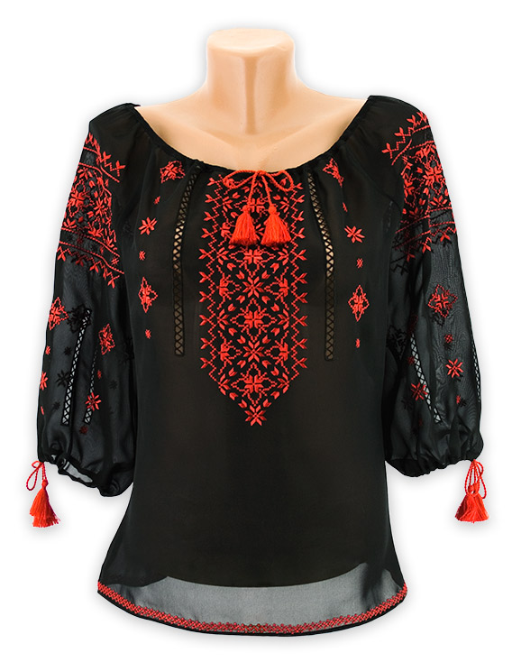 А мне очень понравилась такая сорочка вышиванка на черной ткани! Вроде и ткань черная, но из-за самой вышивки блузка кажется яркой и праздничной. Вложение: