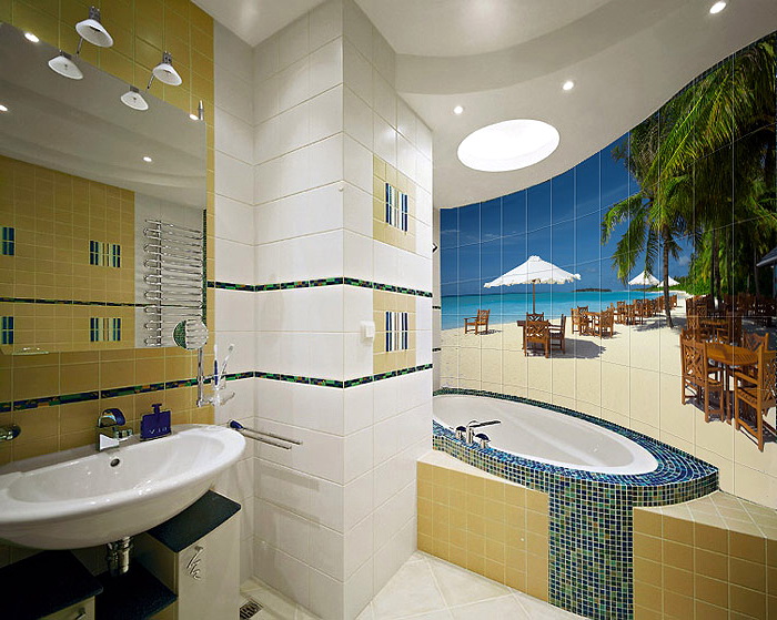 страшно было бы с такими помидорами сожительствовать ))) мне бы понравились наверное фотообои в ванной, или чтобы фото было нанесено на кафель - какой-то пейзаж тропиков ) сидишь в ванной и наслаждаешься красотой )