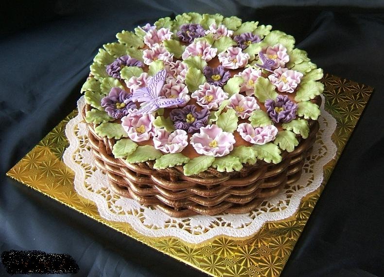 И мне понравилась корзинка с цветами! НЕ отказалась бы от кусочка такого тортика! Еще понравились такие торты - цветочные корзины, но здесь в оформлении уже используется не крем, а мастика.