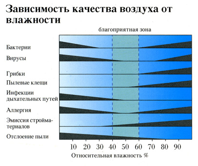 Ну так баночки с водой на подоконниках - это не модно, а современный увлажнитель - модно! А чтоб в доме завелся грибок на стенах, то влажность должна быть очень высокой, где-то 80-90 процентов. По этой табличке видно, что и как активизируется при высокой или низкой влажности воздуха.