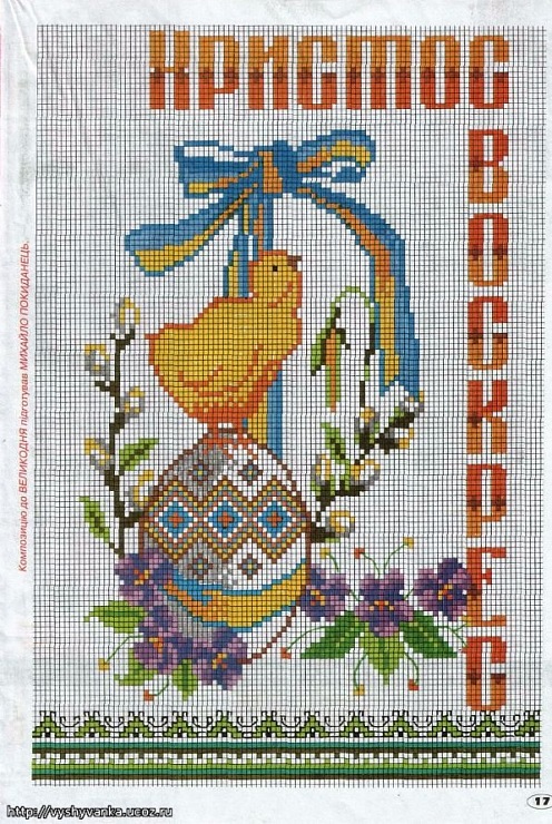 Сестра вышила в этом году Пасхальной рушничок за этой схемой: Вложение: