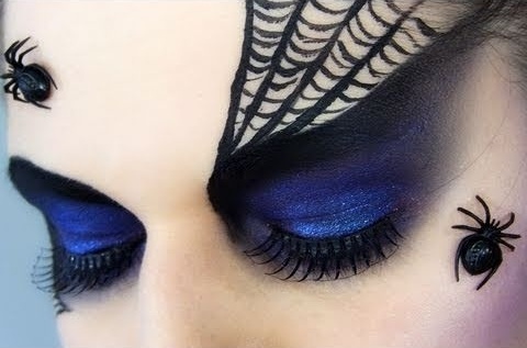 У нее макияж нижней половины лица смотрится как зубы акулы. Если бы я выбирала макияж на Хеллоуин для себя, то я бы выбрала что-то с акцентом на глаза, но без всяких там "открытых ран и кровоподтеков". Понравились такие варинаты. И тематика праздника выдержана, и ничего такого страшного отталкивающего нет. Паутина на глазах смотрится интересно.