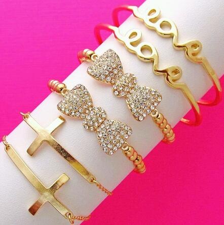 А мне пришлись по вкусу вот такие браслеты, правда все вместе не одевала бы, понравилась надпись LOVE, бантик очень детский, крест вообще не понятен для меня