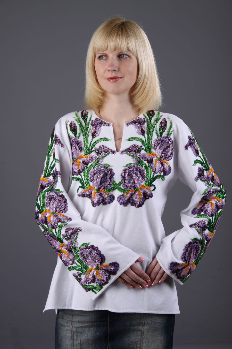 Нам в школе на кружке вышывания как-то давали такие отрезы вышывать и даже немного за это заплатили. Правда там три отреза было: перед и рукава. А из этих рубашек мне средняя нравится больше всего. Гармоничнее для восприятия моего