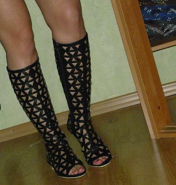 Такие сапоги, как в предпоследнем посте называются римлянки, у меня были такие, как на 2м фото последние, в них очень жарко, нога потеет, а если ноги отекают, так вообще ужас, не рекомендую такие покупать.