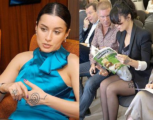 Кстати, иероглифы на боку у Бекхема означают "мама", очень сентиментально А на руках у него ангелы с крыльями и кресты, среди рисунков надписи: имена сыновей и послание для жены, которое означает "всегда на твоей стороне" Мне очень понравилась надпись для Виктории У Тины Канделаки тоже есть тату на внешней стороне ладони, а именно индийский знак силы