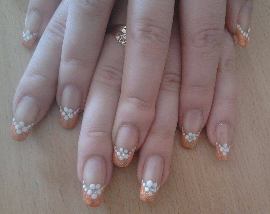 Ирена писал(а): olexandrivna писал(а): От і правильно, пробуйте і щось то вийде, нехай і не за перший раз, а ось ще дуже простенький))) Да, этот очень просто рисовать, к тому же цвет можно выбрать на любой вкус, я себе черным рисовала и тоже золотую линию, проще простого. А главное смотрится хорошо. Мне нравится еще френч украшать цветочками, завтра буду себе такое рисовать Все таки зробила подрузі такий, тільки френч персиковим кольором і на верх блискітки золотисті, ось фото, зациніть, в житті правда яскравіше виглядає)))