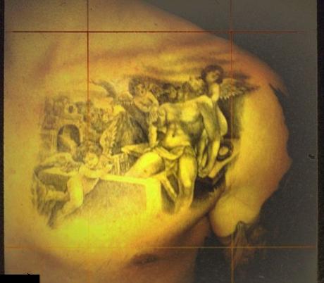 Кстати, это фрагмент Сикстинской капеллы, изображен Иисус Христос и 3 ангела, символизирует татуировка Бекхема и троих его сыновей, это я недавно читала статью о нем. Также у него уже около 20 татушек на теле