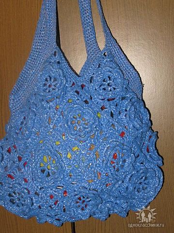 Покажите фото своей сумки, если не сложно. Я прочла, что можно вязать сумки из мусорных пакетов, вот посмотрите, какой шедевр получается