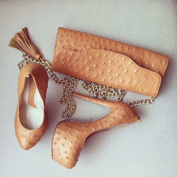 Мне очень нравится сочетание туфлей и сумочки в одном цвете и материале, вот такой "набор" очень зацепил и подойдет под многие платья и цвета