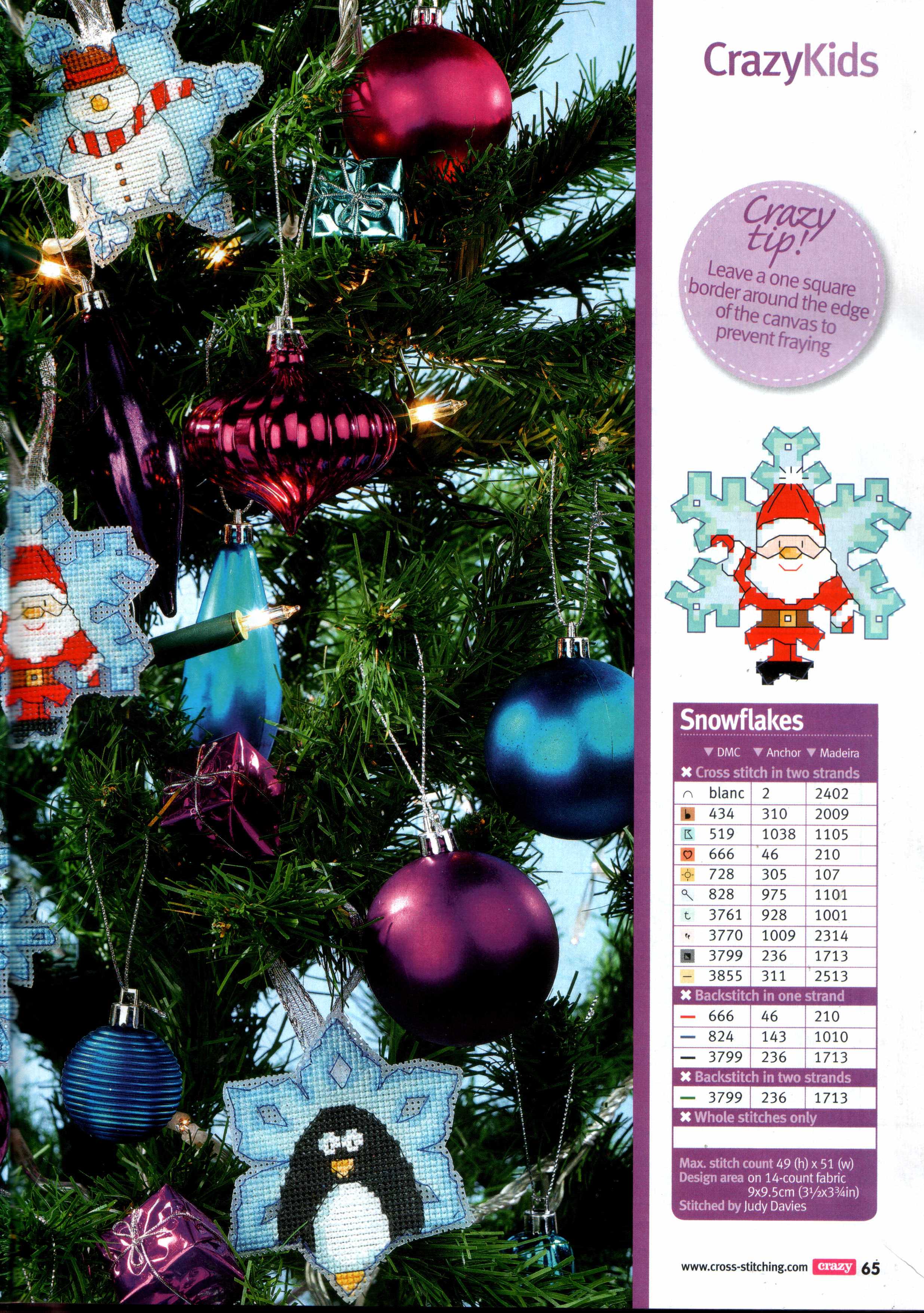 Симпатичный снеговик! Можно вышить на нежно-голубой канве. Нашла схему вышивки крестом новогодних снежинок. Можно использовать для открыток, а можно вышить их на пластиковой канве и оформить их как елочные игрушки!