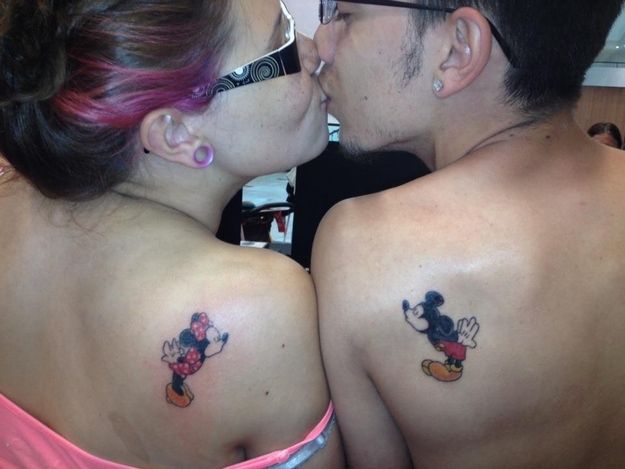 блин, какой идиотизм  не пойму зачем люди это делают ) вот уж точно не хотела б видеть микки мауса на плече у мужа