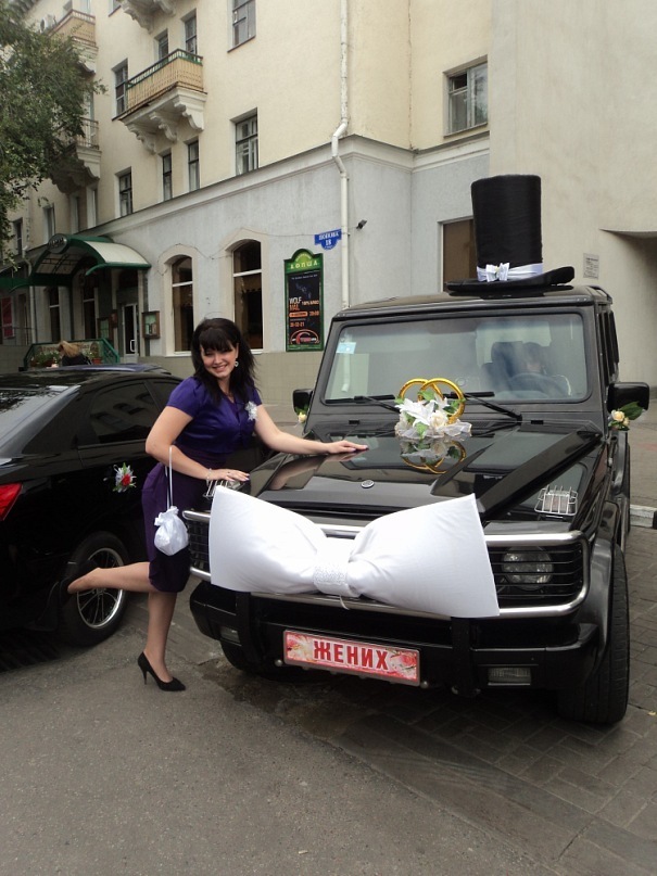 По мне, так какое значение имеет марка для свадьбы? Я выбирала красивый корпус, цвет, хорошо удержанную машину и большой красивый салон. Еще мечтала: для себя белого цвета, а жениха черного. А подружки украсили сами и очень оригинально.