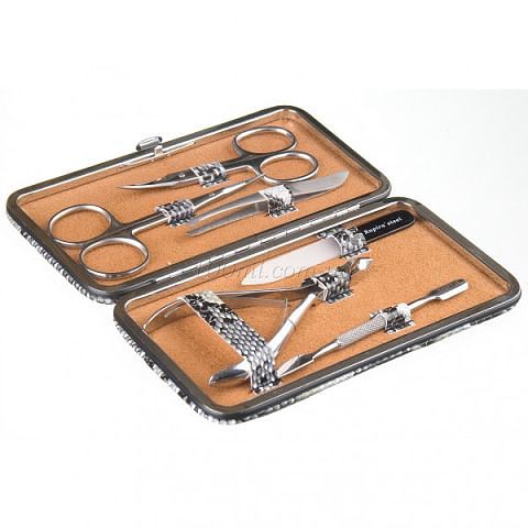 мне не везет с этими наборами,видимо дешево оно и в африке дешево  вернула в магазин обратно  не работает по не понятным причинам  так растроилась по инету не нашла вот этот-Маникюрный набор из 8 предметов. Цвет - черный. Set Manicure 0602 black,уже не дешевый брала  в наборе кусачки,ножницы маникюрные,пинцет,книпсер,пилочка,3вида шаберов(лопаток)Все таки маникюрные инструменты надо брать качественные а не вестись на рекламу.Вот сделала маникюр9кстати ножницы классные и пилочки бомба)и успокоилась