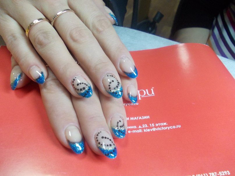 Очень даже интересно смотрится вот такие блесточки как раз в низу ногтика, а не как французский.