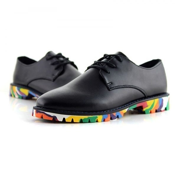 Гадаю, що чоловічі туфлі з кольоровим низом доволі красиво будуть виглядати з кольоровими штанами та навіть з чимось подібним)) А останні туфлі дуже красиві)))
