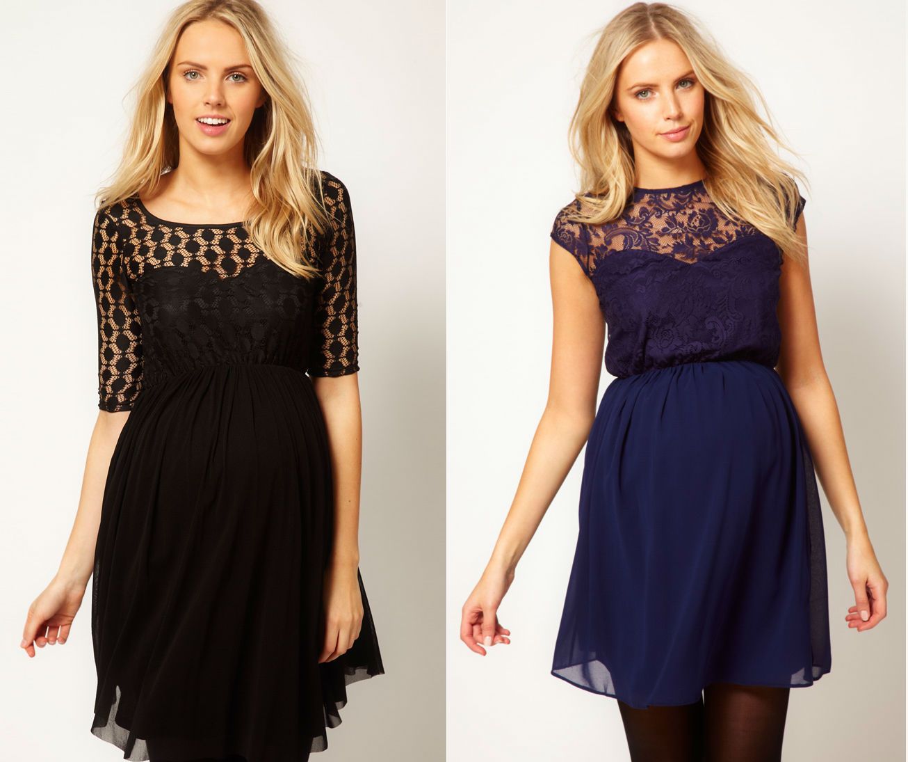 И мне не понравились платья, которые в обтяжку. Я не говорю, что животик надо скрывать и ходить сугубо в балахонах, но платья в обтяжку выглядят на беременных женщинах нелепо - что короткие, что длинные. Мне понравились эти коктейльные платья для беременных. Цвета правда темные, но выглядят красиво.
