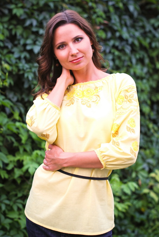 А как вам сорочка-вышиванка на светло-желтой ткани? Как по мне необычно! Думаю, подойдет брюнеткам.