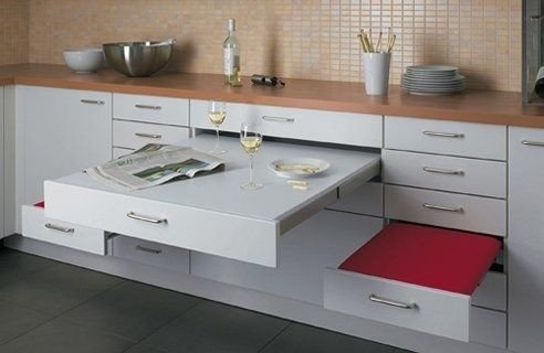 Задумка может и не плохая, это разве, что когда места совсем нету, а если есть возможность, я бы поставила обычный стол.