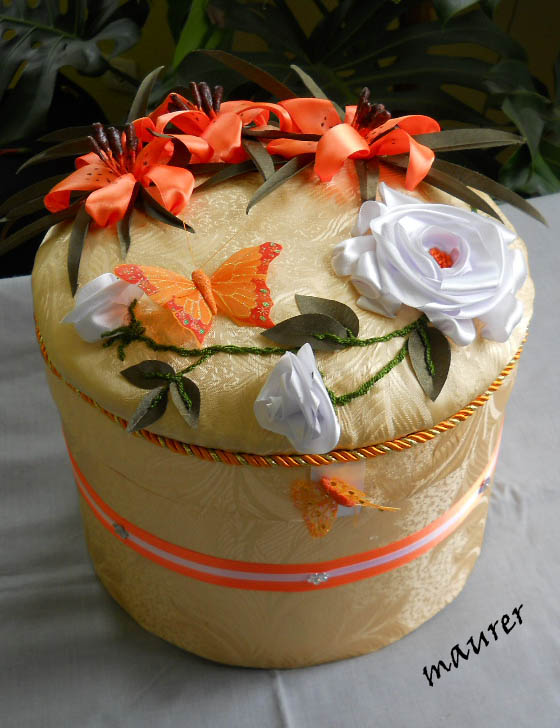 Спасибо. Да, шкатулки, как и все остальное, я делаю своими руками. Что касается способов, то всему я научилась в интернете. Воспользуясь поисковиком, Вы тоже сможете получить всю информацию. А вышивка лентами совершенно не сложное занятие. Попробуйте- это увлекательно.