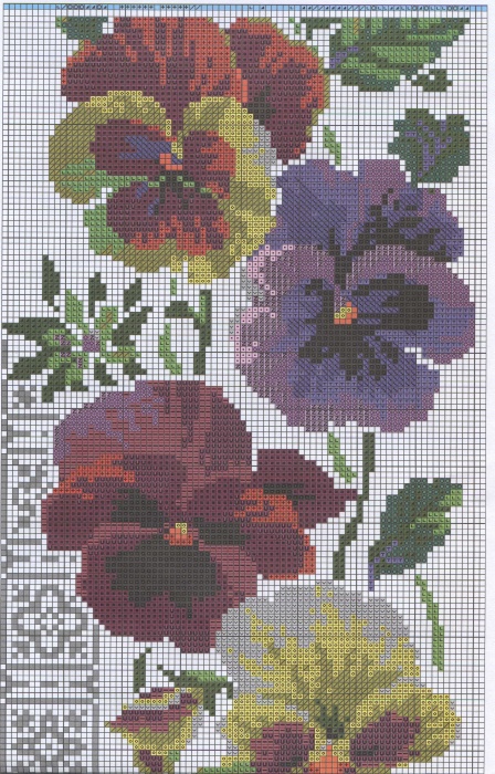 Что-то я в последнее время увлеклась вышивкой крестом Риолис - мне очень нравятся их картины с цветами. Например, у них есть целая серия вышитых цветочных панелей. Есть на черной канве, а есть на белой. Мне очень нравится с анютиными глазками: Вложение: