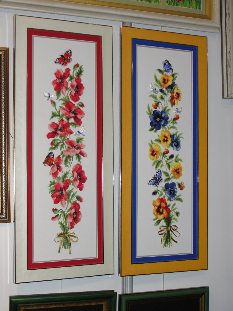 Это "Алые маки" от Риолис.. Картина получилась большая, и как следствие дорогая в оформлении. А картинка "Пинетки" уехала во Францию- у друзей родилась дочь, назвали Машей.