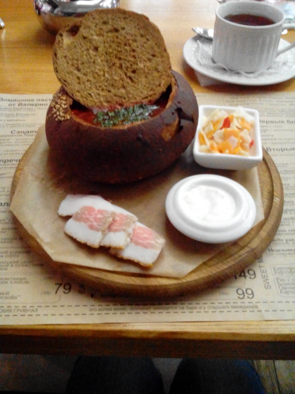 В Харькове нашли одно место, где очень вкусный борщ))))Называется Favorite Place Вот так его подают, мне он чем - то напоминает Польшу. Там тоже такие блюда есть.