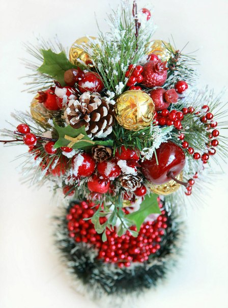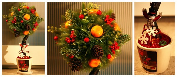 Новогодние топиари очень красивые! Я вообще так люблю всю эту праздничную атрибутику - а тут такое! Правда, наверное, придется немного потратится, чтоб такую красотень соорудить - и шарики елочные купи, и фигурки разные...